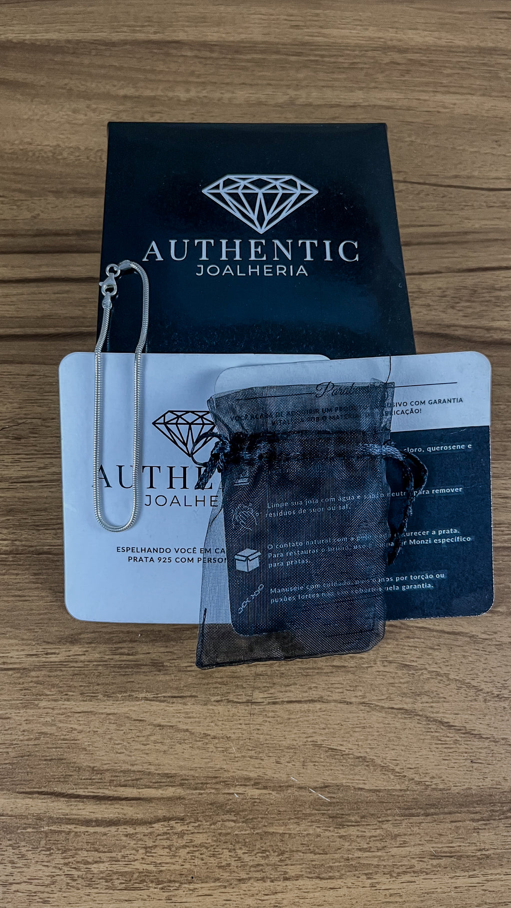 Apresentação Premium e Proteção Assegurada: Enviada em uma caixa elegante com acabamento em preto fosco e detalhes prateados, cada pulseira é cuidadosamente embalada em uma organza anti-arranhão para proteção adicional. Esta embalagem não só garante a segurança durante o transporte, mas também faz dela um presente ideal para qualquer ocasião.